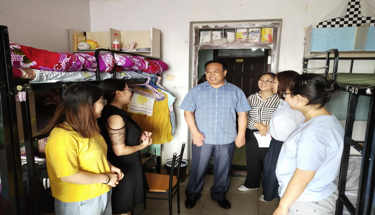 党总支书记朱兴国、副院长王晓光、辅导员宋海娇一行来到南湖校区学生宿舍,关怀慰问2019级全体新生。
