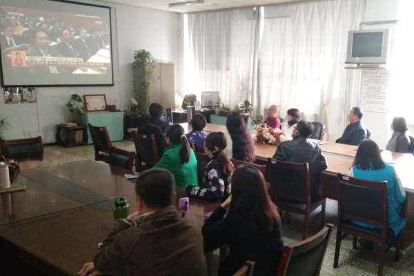 党总支在学院资料室组织全体教师和部分研究生集体观看习近平总书记代表十八届中央委员会所做的主题报告,认真学习党的十九大的新理论和新精神。