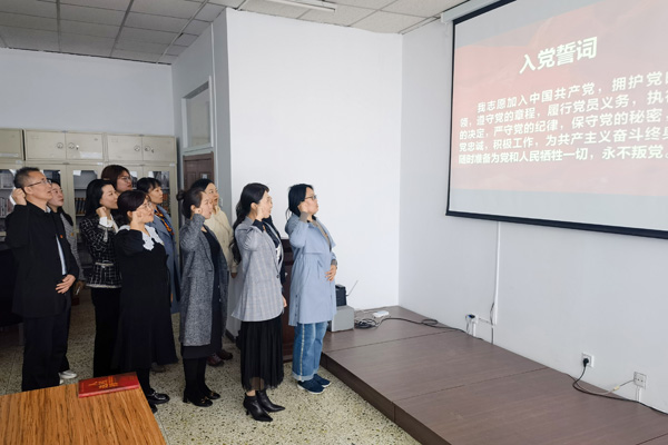 各党支部结合伟大建党精神,联系工作实际,进行了交流分享,明确在今后的工作中积极主动将党员身份“亮起来”、把党员形象“立起来”,在学史力行中增强政治责任感和历史使命感,在学校综合改革的实际需要中坚定必胜信念,勇于攻坚克难,敢于迎难而上,始终以教书育人为职责使命,争做为学、为事、为人的“大先生”。交流结束后举行了重温入党誓词活动,全体党员高举右拳,面向党旗庄严宣誓。