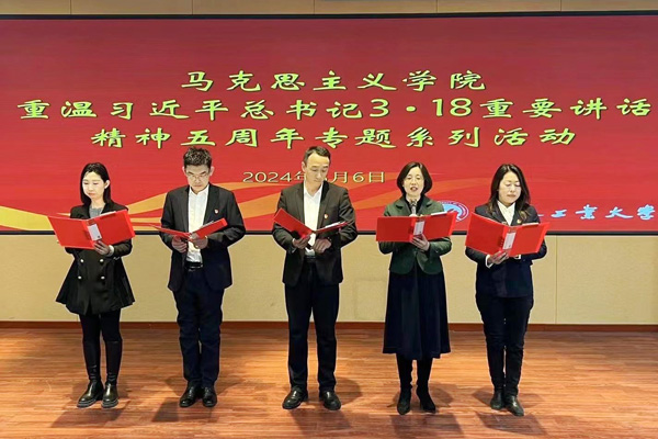 概论党支部的全体教师伴随着鼓舞人心的校歌旋律讲出了工大人在接续奋斗中书写的精彩华章,讲出了工大人在推进改革创新实践中的战略定力,滚烫文字凸显的是工大加快发展新质生产力,在服务吉林全面振兴率先实现新突破中不断贡献工大新力量。