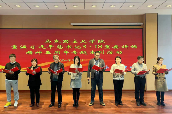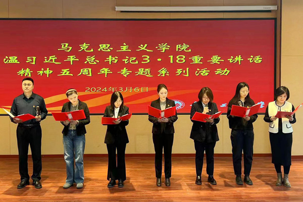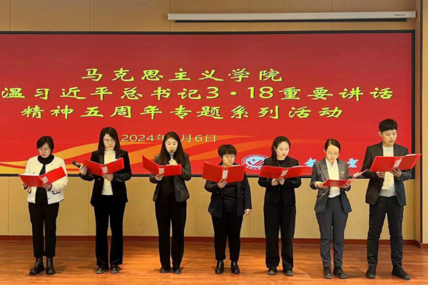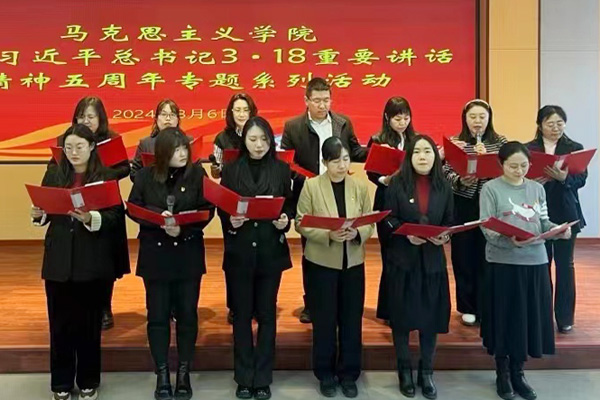 本网讯(通讯员 杨慧娇为进一步重温习近平总书记“3·18”重要讲话精神,不断增强思政课教师的红色底蕴,厚植家国情怀,3月6日,日韩无码 在综合楼报告厅开展了重温习近平总书记“3·18”重要讲话精神五周年专题系列活动之“上好思政课,当好引路人”朗诵会。活动开始前,学院全体教师集体重温了习近平总书记“3·18”重要讲话内容。