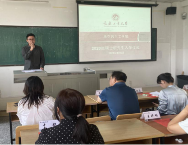 党委书记朱兴国、院长马光焱、副院长王晓光、副院长于浚湜、党委副书记王权、院学术分委会主席程颖、思想道德修养与法律基础教研室主任于影、马克思主义基本原理概论教研室主任姚红、毛泽东思想和中国特色社会主义理论体系概论教研室主任孟婷、教师第二党支部书记唐立平、教师第三党支部书记王晓珊、青年博士代表韩亚男及全体2020级研究生出席仪式。仪式由学院教师兼研究生教学秘书魏向宇老师主持。