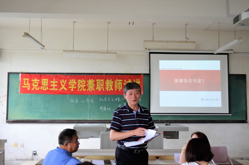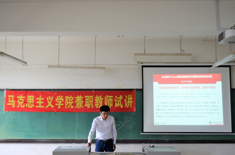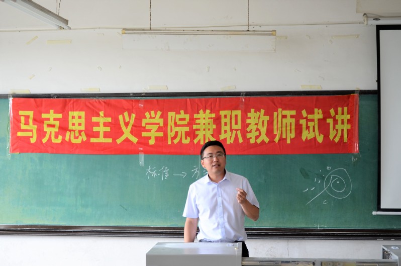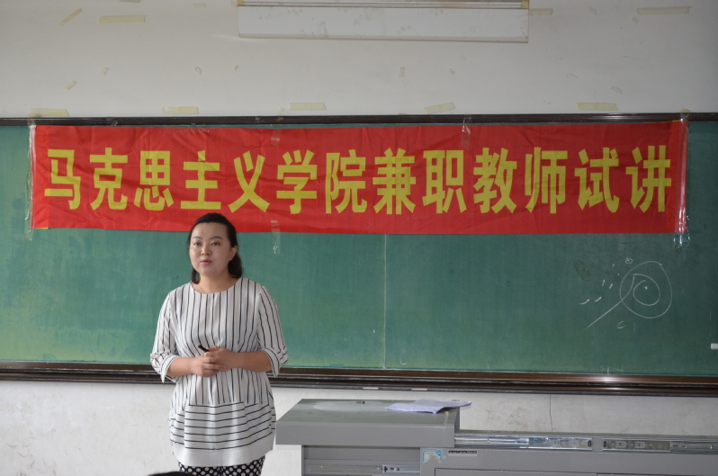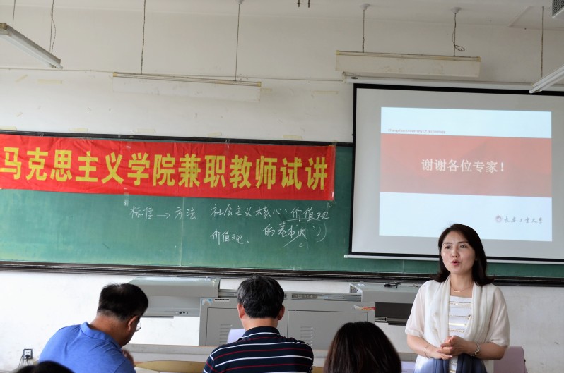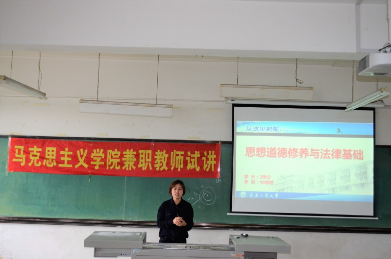 于主楼582教室举行了思想政治理论课兼职教师试讲活动。教务处李万龙处长出席了本次试讲活动,并对思想政治理论课教学工作进行指导。学院班子成员和教研室主任全程参与,并对兼职教师的教学能力和教学水平进行考核。