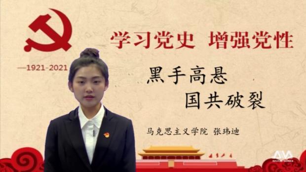 “党史故事100讲”推出后反响热烈,学院硕士研究生刘静竹(中共党员)、杨雨璇、张玮迪、刘婕、罗迪、蔡佳卉六名同学继续开展了第六期和第七期的讲党史故事活动。他们分别以《五四运动 唤醒民众》《北伐洪流 铁军扬名》《黑手高悬 国共破裂》《会聚七大 确立指针》《首届人大 奠定国本》《敞开国门 拓展视野》为题,录制了精彩微视频,使同学们进一步加深对党史的了解。
