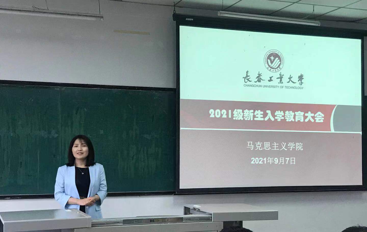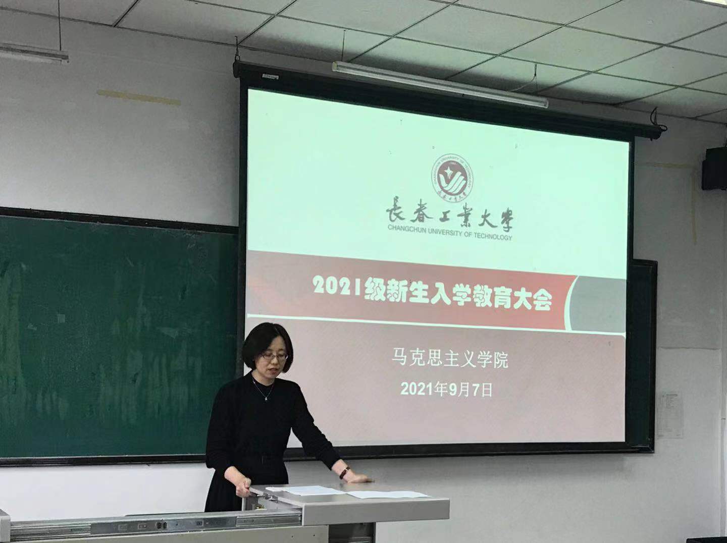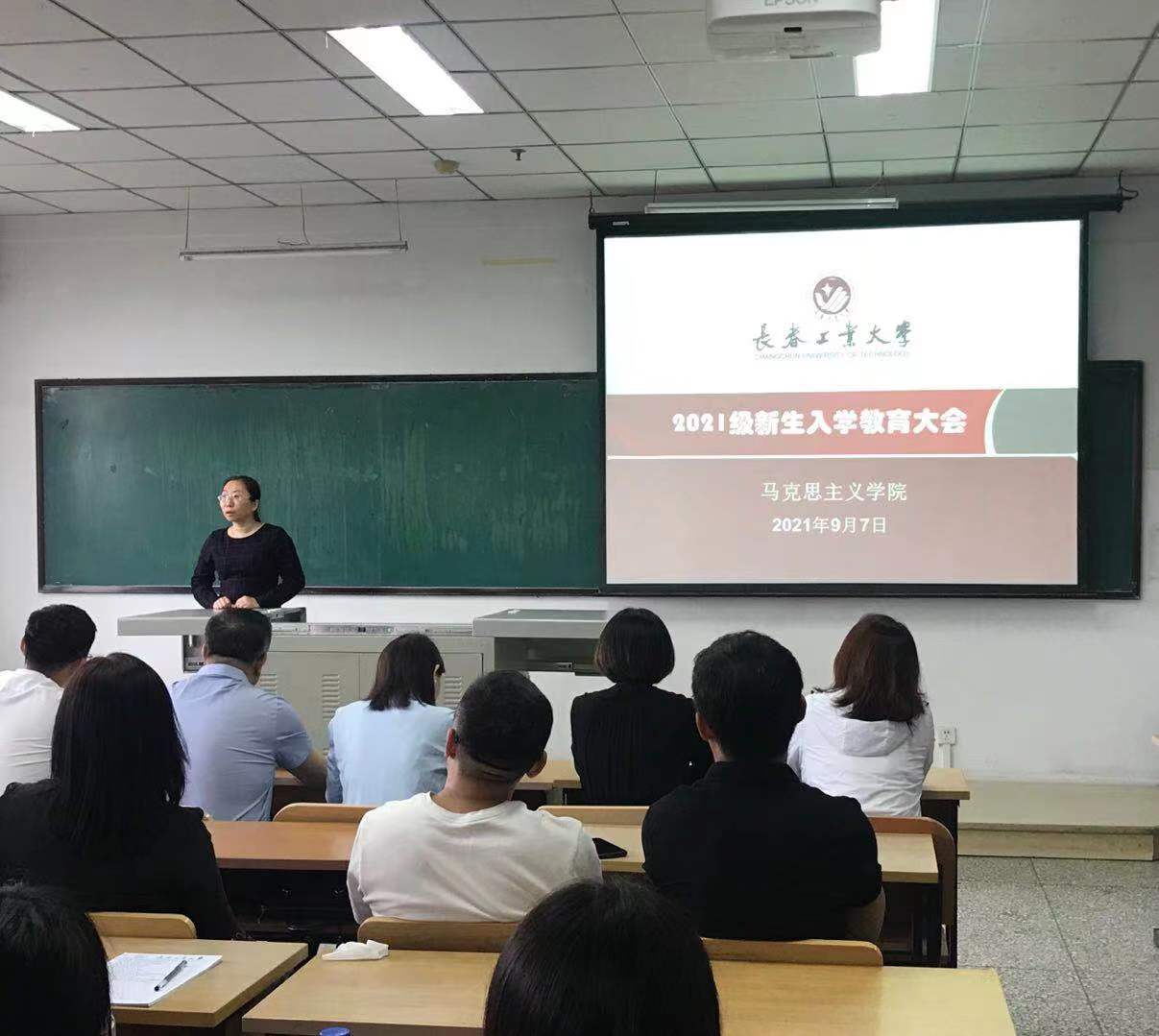 院长马光焱代表学院全体教师对新入学的2021级55名研究生表示热烈欢迎,她详细介绍了学院发展的历史沿革及取得的优异成绩,并对同学们寄语了希望,鼓励学生们要“学会思考,学会求教,学会坚守”,不负韶华、以梦为马。