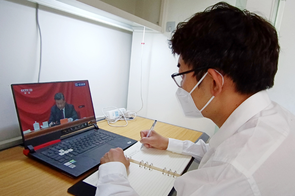 师生通过网络、电视等多种方式收听收看大会盛况,认真学习领会习近平总书记重要讲话精神。师生们表示,总书记的讲话立意深远、内涵丰富,饱含深情、语重心长,激动人心、催人奋进,将进一步坚定理想信念,树立共产主义远大理想和中国特色社会主义共同理想,刻苦学习、锐意创新,用青春的能动力和创造力激荡起民族复兴的澎湃春潮,用青春的智慧和汗水打拼出一个更加美好的中国!