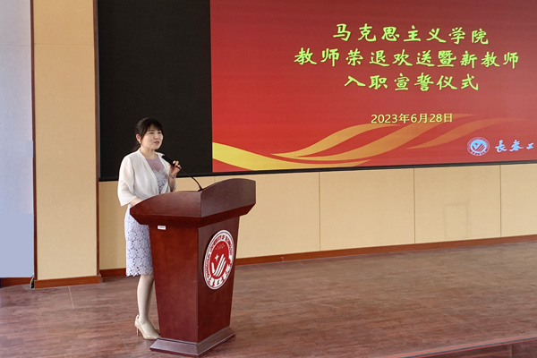 举行老教师荣退欢送暨新教师入职宣誓仪式。学院党政班子成员、全体教职工参加了仪式,仪式由副院长于浚湜主持。