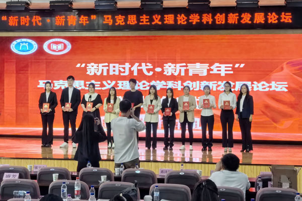 师生代表参加了会议,共有11篇论文获奖,其中一等奖5篇、二等奖1篇、三等奖5篇。杨梦雪、汪佳豪、刘雨、罗军含等4名学生在马克思主义理论学科创新发展论坛上发言。