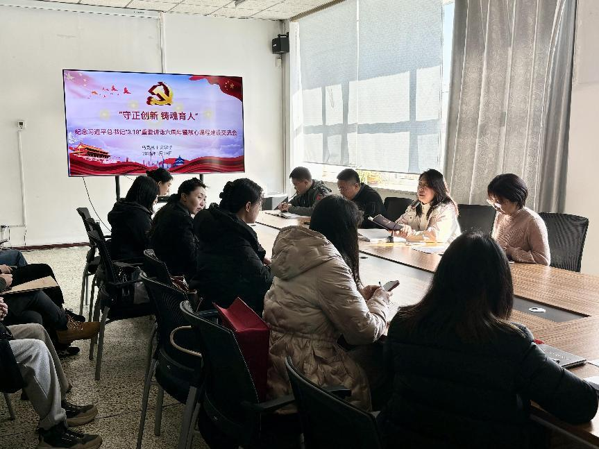 召开“守正创新 铸魂育人—纪念习近平总书记3·18重要讲话六周年暨核心课程建设交流会”。学院领导班子和全体思政课教师参加会议,会议由学院院长于浚湜主持。